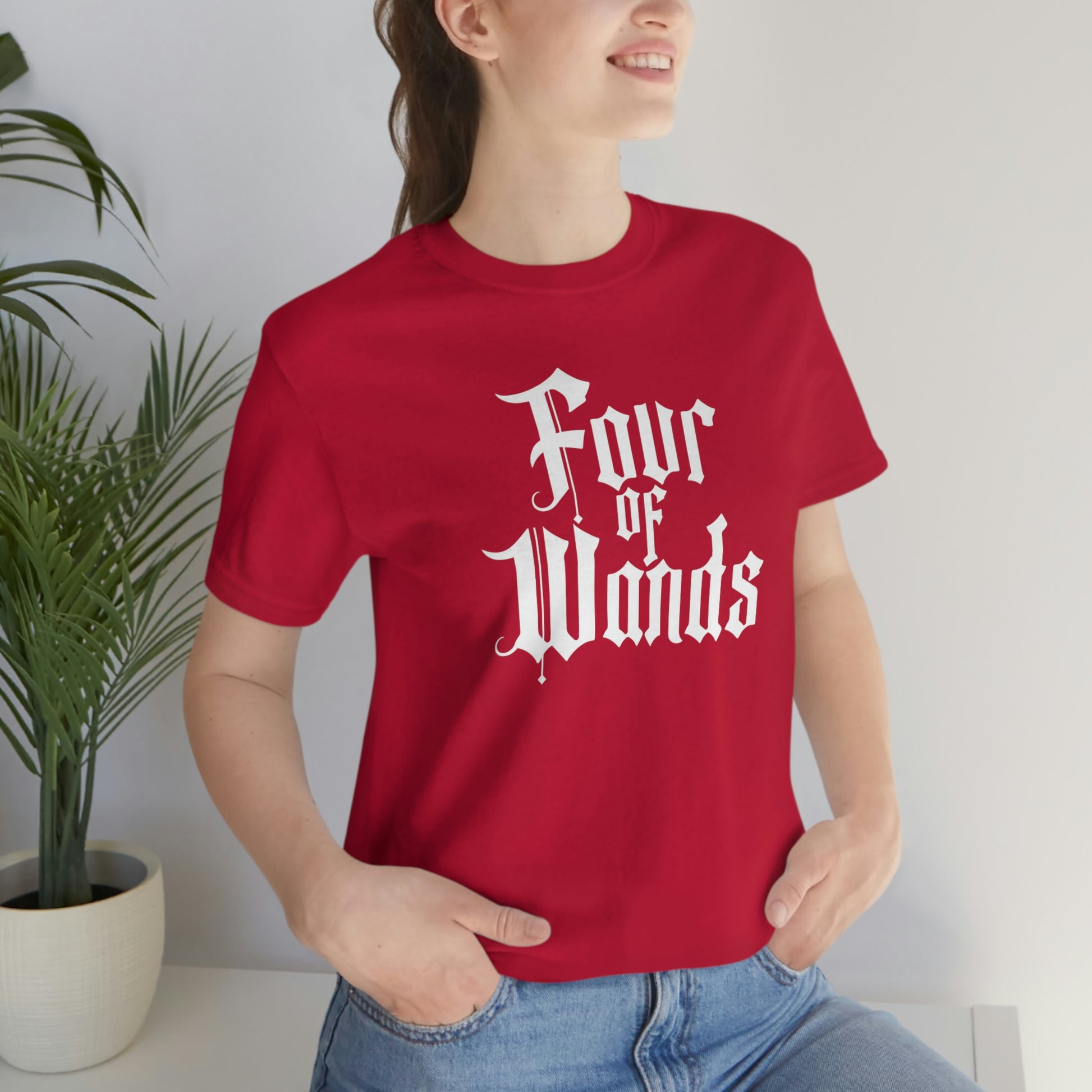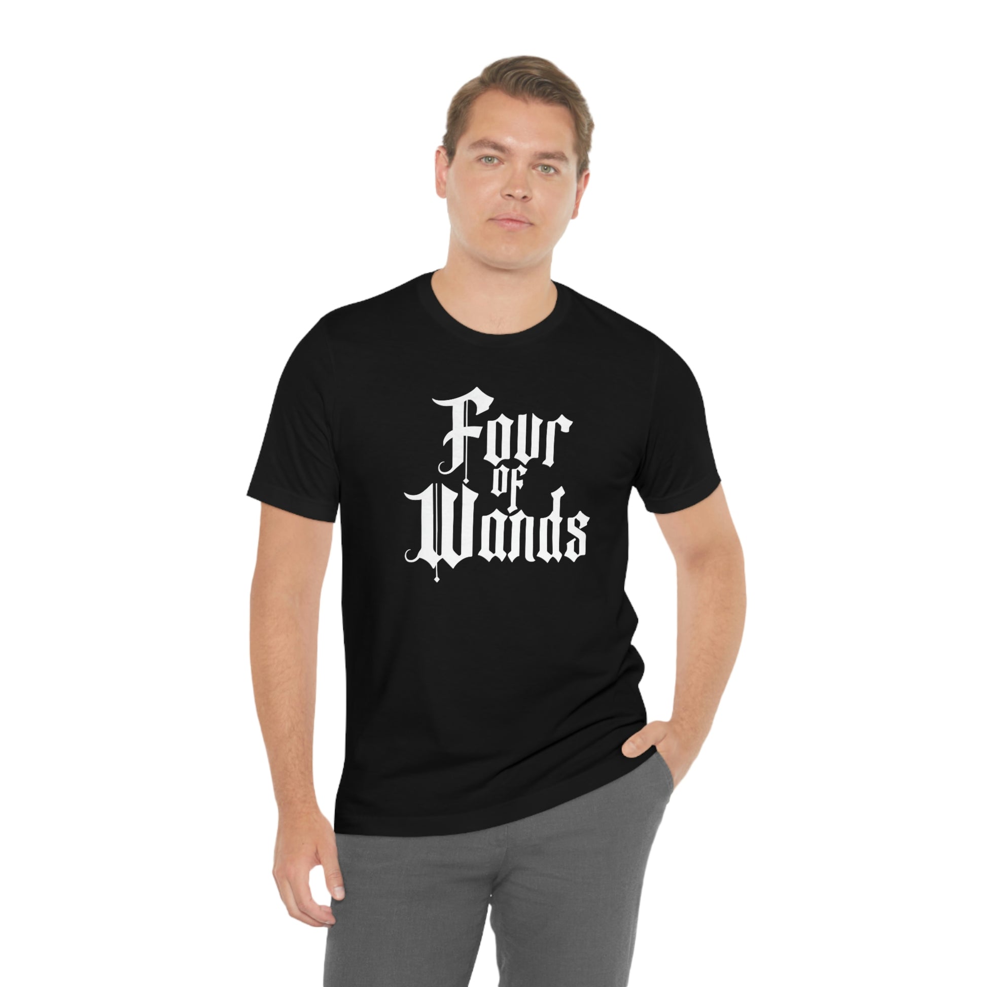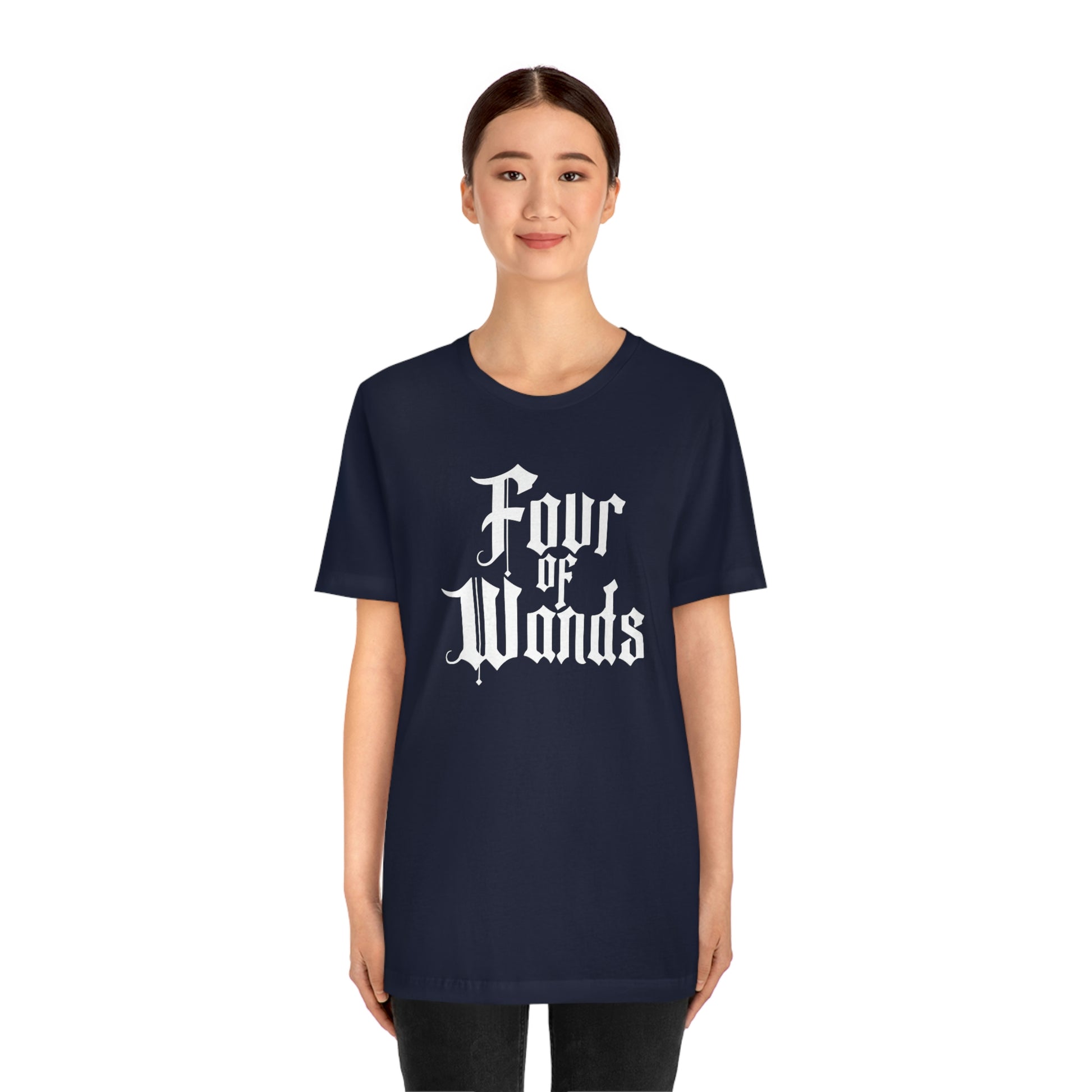 Four of Wands White Logo Unisex Jersey Short Sleeve Tee